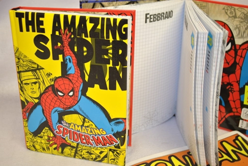 Diario Spiderman giallo 10 mesi non datato con copertina cartonata. Misura cm 18,5 x 13,5 x 2.