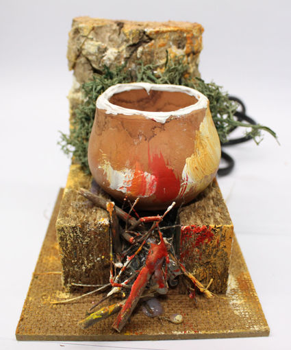 Pentola su fuoco, cm. 10x10, il fuoco è simulato con una lampada, l'ambientazione richieche collegamento alla rete elettrica. Il cavo elettrico lungo mt. 1,5. 230volt, 1w