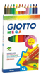 Pastello esagonale lunghezza 18 cm, verniciato nel colore della mina con spigoli dorati. Mina gigante super resistente diametro 5,5 mm. Confezione da 12 pezzi.