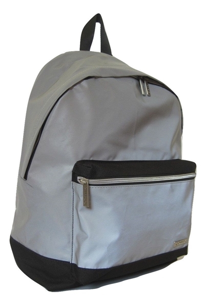 Zaino americano Comix grigio. Chiusura superiore a cerniera e ampia tasca frontale anche a chiusura a cerniera. Tasca interna con cerniera. Schienale a base morbida e spallacci imbottiti e regolabili. Materiale Polyestere effetto riflettente. Misura: 30 cm x 40 cm x 20 cm.